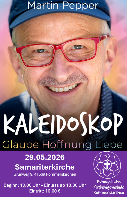Wir freuen uns sehr, dass Martin Pepper am 29.5.2026 mit seinem neuen Programm bei uns in der Samariterkirche in Rommerskirchen zu Gast ist!